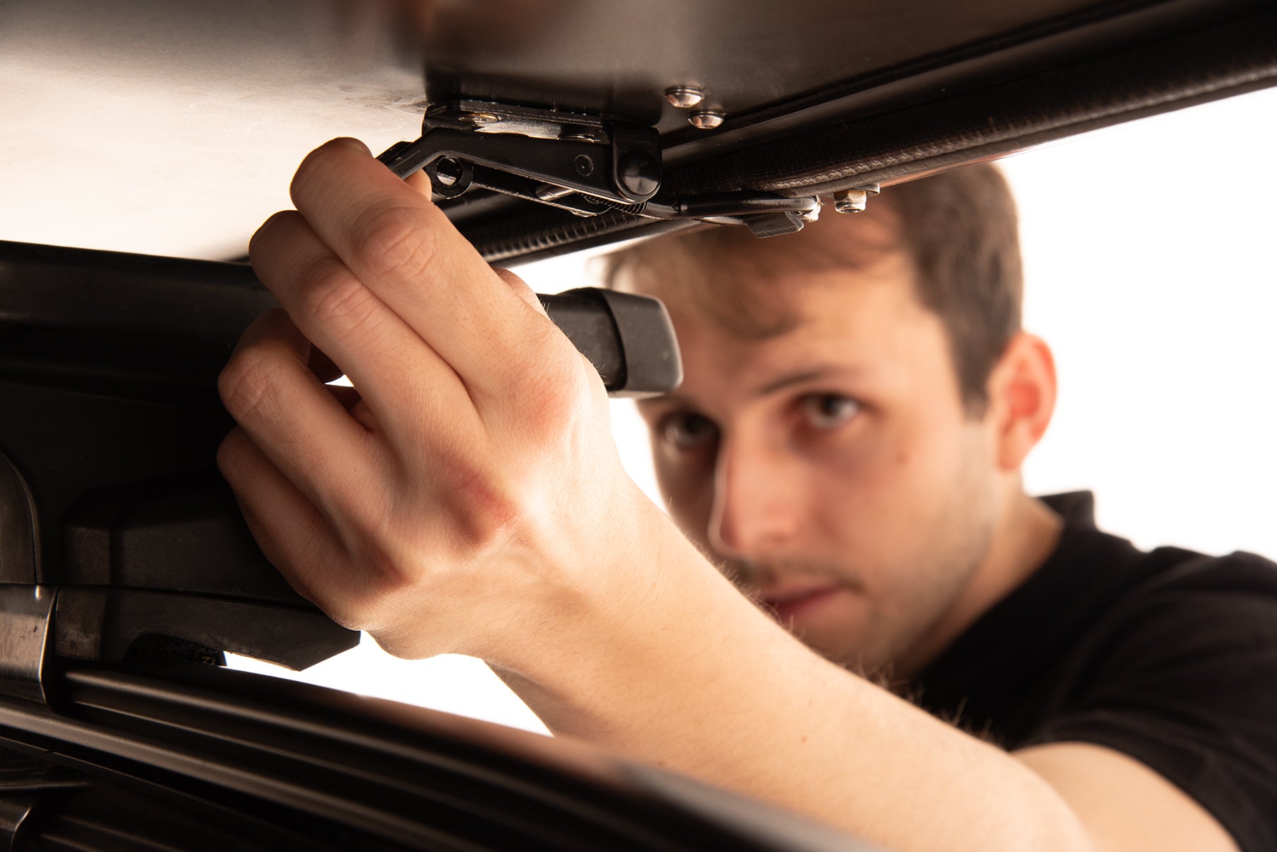Und so begann es 2020 klassisch in der heimischen Garage in Norddeutschland. Es gab nur die Vision vom perfekten Dachzelt, aber noch nicht die Lösung. "Learning by Doing" und "Trial und Error" waren die ständigen Begleiter von Manu und Jakob. So ging es über mehrere Stationen, jeder Versuch brachte neue Eigenschaften mit. So waren es beim vierten Prototyp die Gasdruckfedern und beim sechsten Prototyp, die Idee, dem Faltdachzelt eine harte Aluminiumschale zu geben. Der Grundstein für das neue Fusions-Erlebnis aus Platz, Stabilität und vereinfachtem Reisen war gelegt. Prototyp 8 brachte dann eine weitere Neuheit mit sich: Den Panoramamodus. Dieser machte das Zelt zu einer Dachterasse und zeigt auf, dass es beim Dachzelt nicht nur um Schlaf gehen muss.
