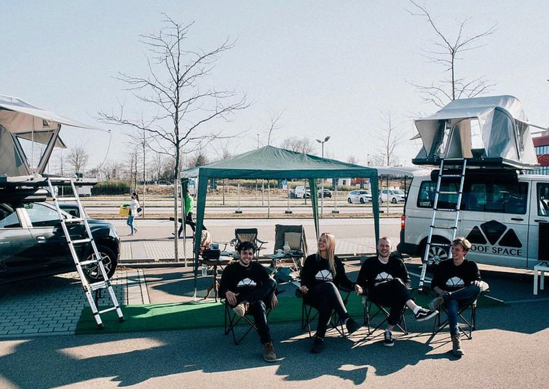 Und so begann es 2020 klassisch in der heimischen Garage in Norddeutschland. Es gab nur die Vision vom perfekten Dachzelt, aber noch nicht die Lösung. "Learning by Doing" und "Trial und Error" waren die ständigen Begleiter von Manu und Jakob. So ging es über mehrere Stationen, jeder Versuch brachte neue Eigenschaften mit. So waren es beim vierten Prototyp die Gasdruckfedern und beim sechsten Prototyp, die Idee, dem Faltdachzelt eine harte Aluminiumschale zu geben. Der Grundstein für das neue Fusions-Erlebnis aus Platz, Stabilität und vereinfachtem Reisen war gelegt. Prototyp 8 brachte dann eine weitere Neuheit mit sich: Den Panoramamodus. Dieser machte das Zelt zu einer Dachterasse und zeigt auf, dass es beim Dachzelt nicht nur um Schlaf gehen muss.